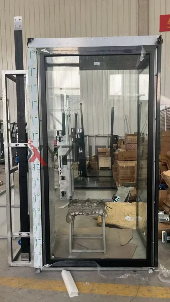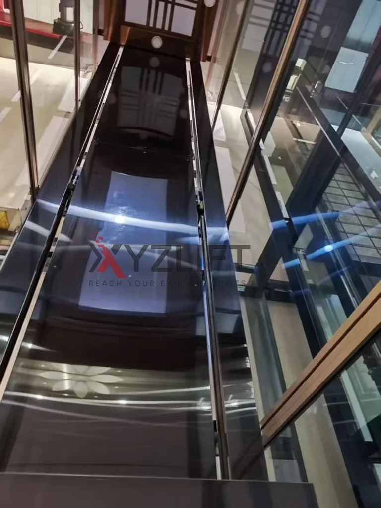 Considering the shaft width of 1930mm, the rear shaft glass, if a single piece, would be 1.9 meters wide, making installation difficult. Therefore, our technical team proposed adding a horizontal brace in the middle to divide the glass into two pieces.