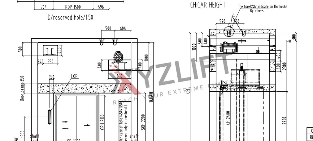 4. Install the lifting hooks according to the markings on the civil engineering drawings.