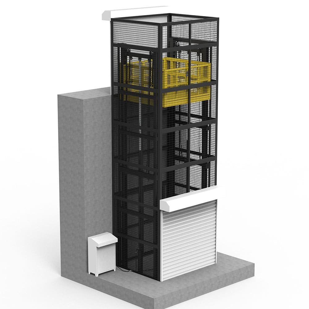 - Guard-lock for doors: The lift will only operate when all doors are closed. If a door is open, the goods lift will stop working.