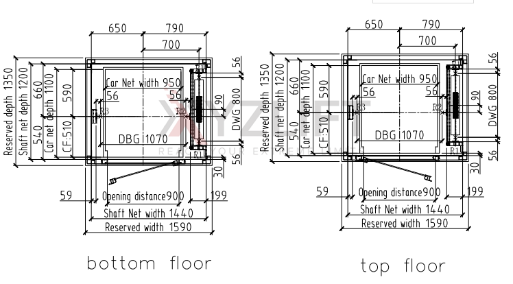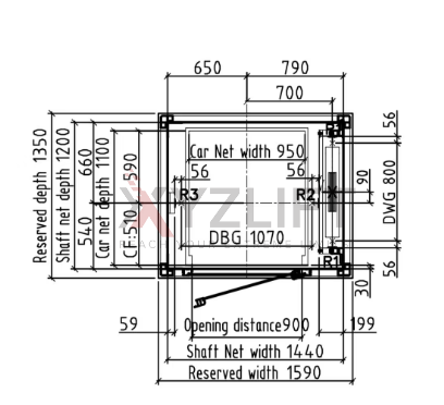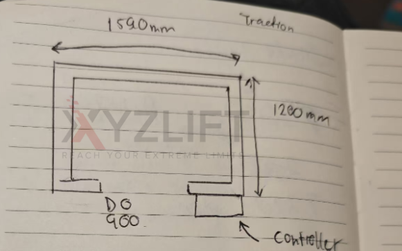 Hydraulic shaft dimensions: 1590mm W*1350mm D (Dimensional adjustments made later)
