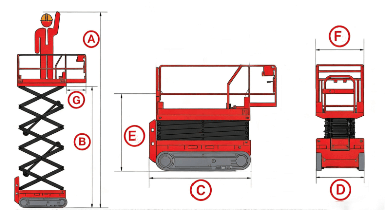 • Crawler Scissor Lift: Uses a rubber track system for superior traction and flotation on soft, rough, or sloped terrain.