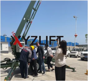 The customer returned to Russia at the end of April. After several months of preparation and communication, we received the official purchase order from the customer in September as scheduled. The customer confirmed an order for 3 towable boom lifts of different working heights: 12m, 16m and 19m. Among them, the 19m unit was specifically required to be customized in exclusive army green.