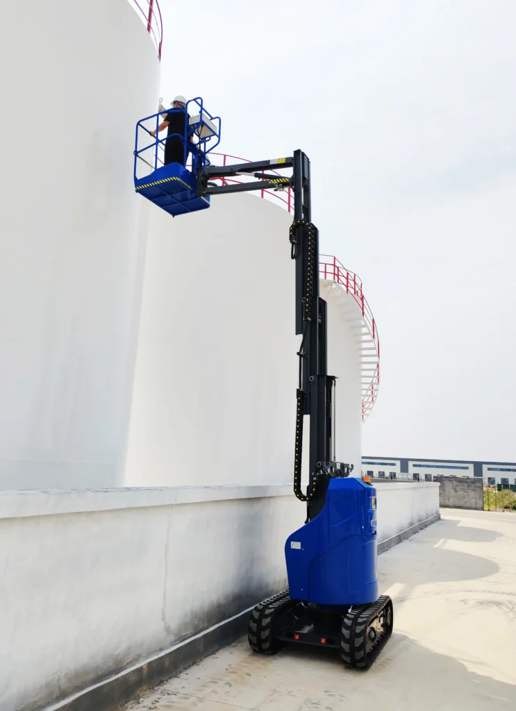 Indoor/Outdoor Ready: With zero-emission battery power, this vertical mast lift ensures quiet, fume-free indoor operation, while its rugged construction delivers reliable performance outdoors—versatility you expect from a premium vertical man lift.