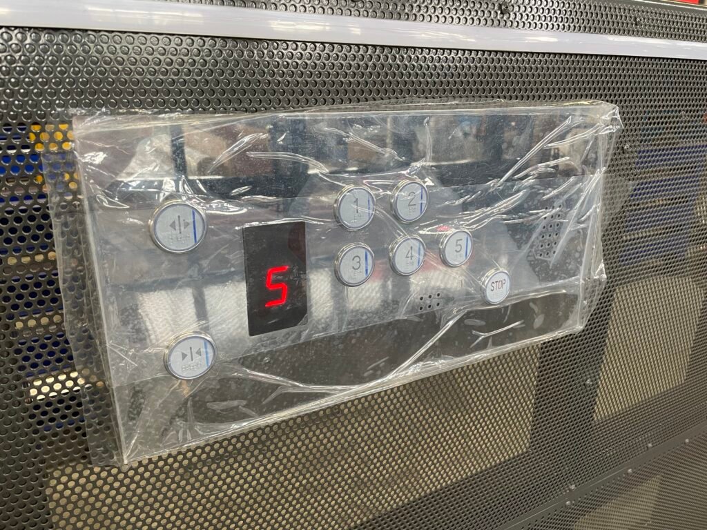 3. Customized control panels as specified by the customer. These panels include floor display, floor selection buttons, rolling shutter door control buttons, an emergency call function, and an intercom system.